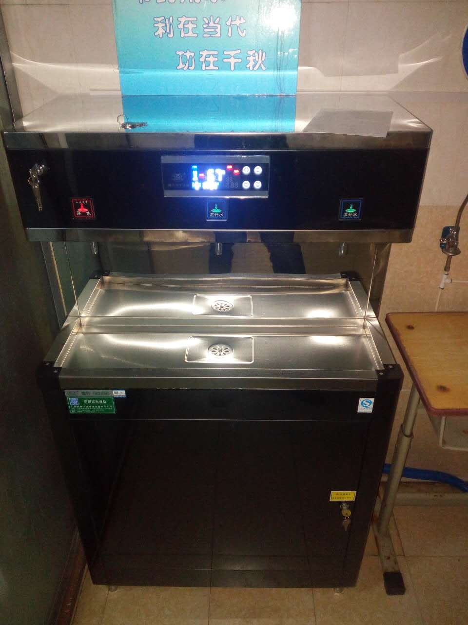 呼和浩特市玉泉區石東路小學,為提升學生的飲水質量,專門配備了適合兒童取水的校園飲水設備,該設備高度適合,純凈水燒開,循環冷卻后得到溫開水供學生飲用,徹底解決了學生的飲水難題。